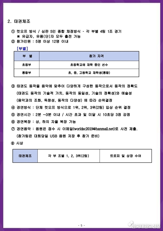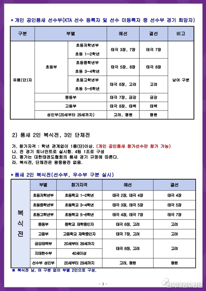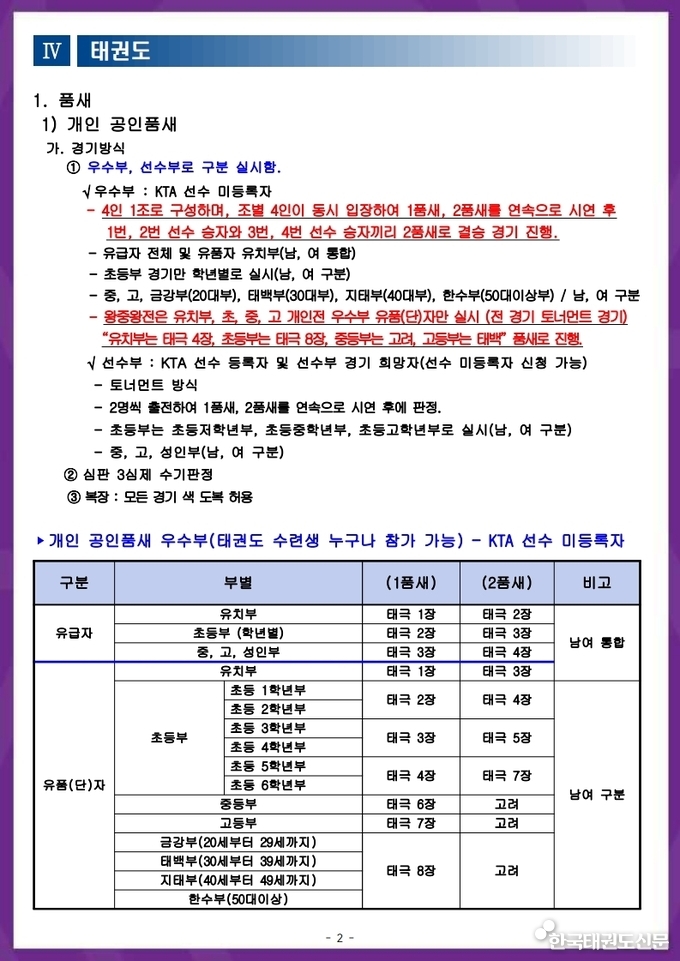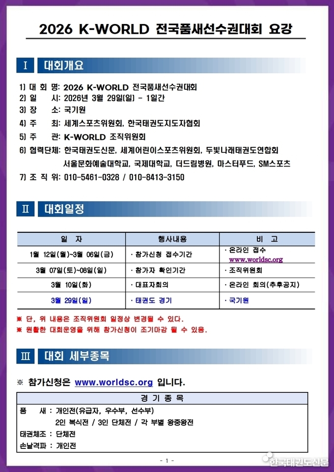 [한국태권도신문] '2026 K-WORLD 전국품새선수권대회' 요강