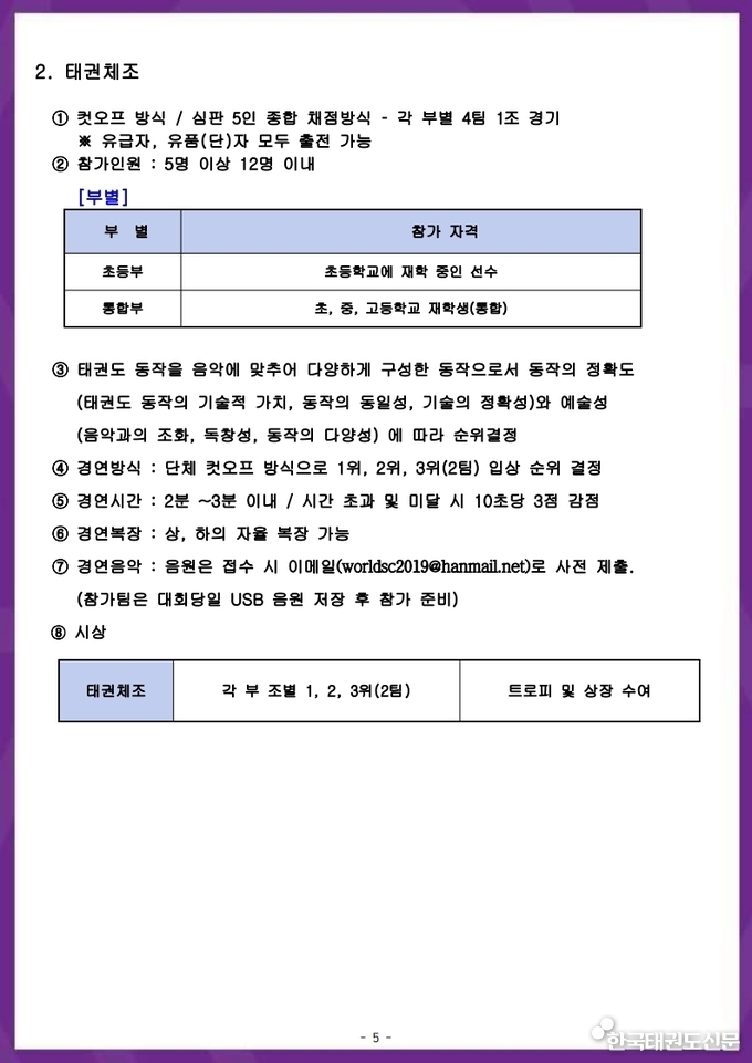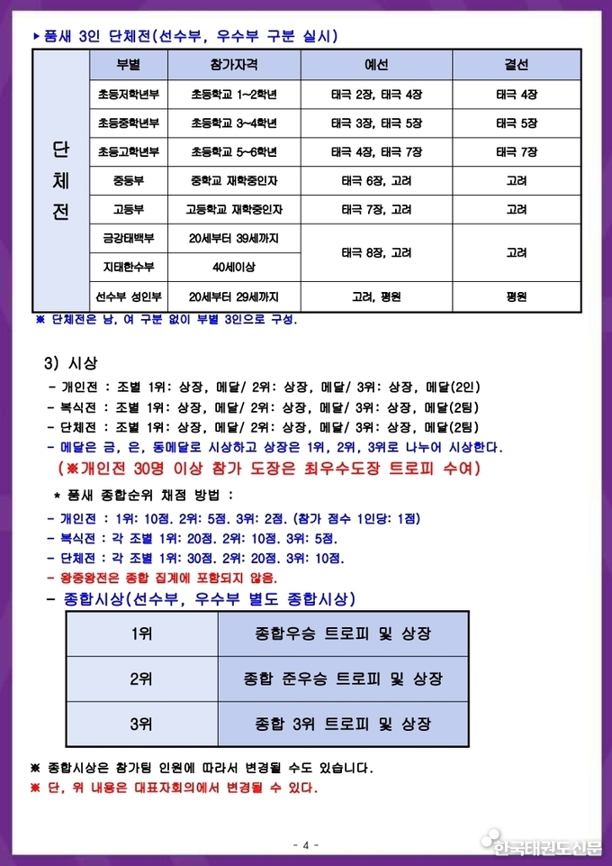 [한국태권도신문] '2026 K-WORLD 전국품새선수권대회' 요강