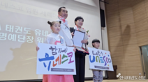 [한국태권도신문] 전라북도 부안 실내체육관에서 2025년 10월 25일부터 26일까지 제6회 부안붉은노을배 전국 태권도 경연대회가 성황리에 개최됐다. 이번 대회에는 전국 각지에서 모인 태권도 선수와 지도자, 임원 등 총 1,310여 명이 참여해 2일간 열띤 경쟁을 펼쳤다. 대회 1일차인 25일에는 품새 경기가 진행됐다. 선수 680명과 감독, 임원 165명이 참가해 그동안 갈고닦은 기량을 선보였으며 각 연령대별 경쟁이 치열하게 전개됐다. 이어진 2일차인 26일에는 겨루기 경기가 펼쳐졌다. 선수 350명과 감독, 임원 115명이 참가해 경기장의 긴장감과 열기를 한층 끌어올렸다. 이번 대회는 참가자들의 기술력 향상과 교류의 장이 될 뿐만 아니라 지역사회와 함께하는 축제의 성격도 갖췄다. 개회식과 함께 진행된 부안교육지원청 오케스트라의 식전 공연은 참가자와 관중들의 큰 박수를 받으며 분위기를 고조시켰다. 또한, 대회 현장에서는 국기원 기술심의회 박경식 부의장이 윤웅석 국기원장을 대신하여 부안군의회 박병래 의장에게 명예 4단증을 수여하였으며 박병래 의장은 명예 4단 증을 받은 기쁨에 감사의 마음을 전하고 선수들의 도전과 열정을 격려했다. 명예단증 수여는 대회 참가